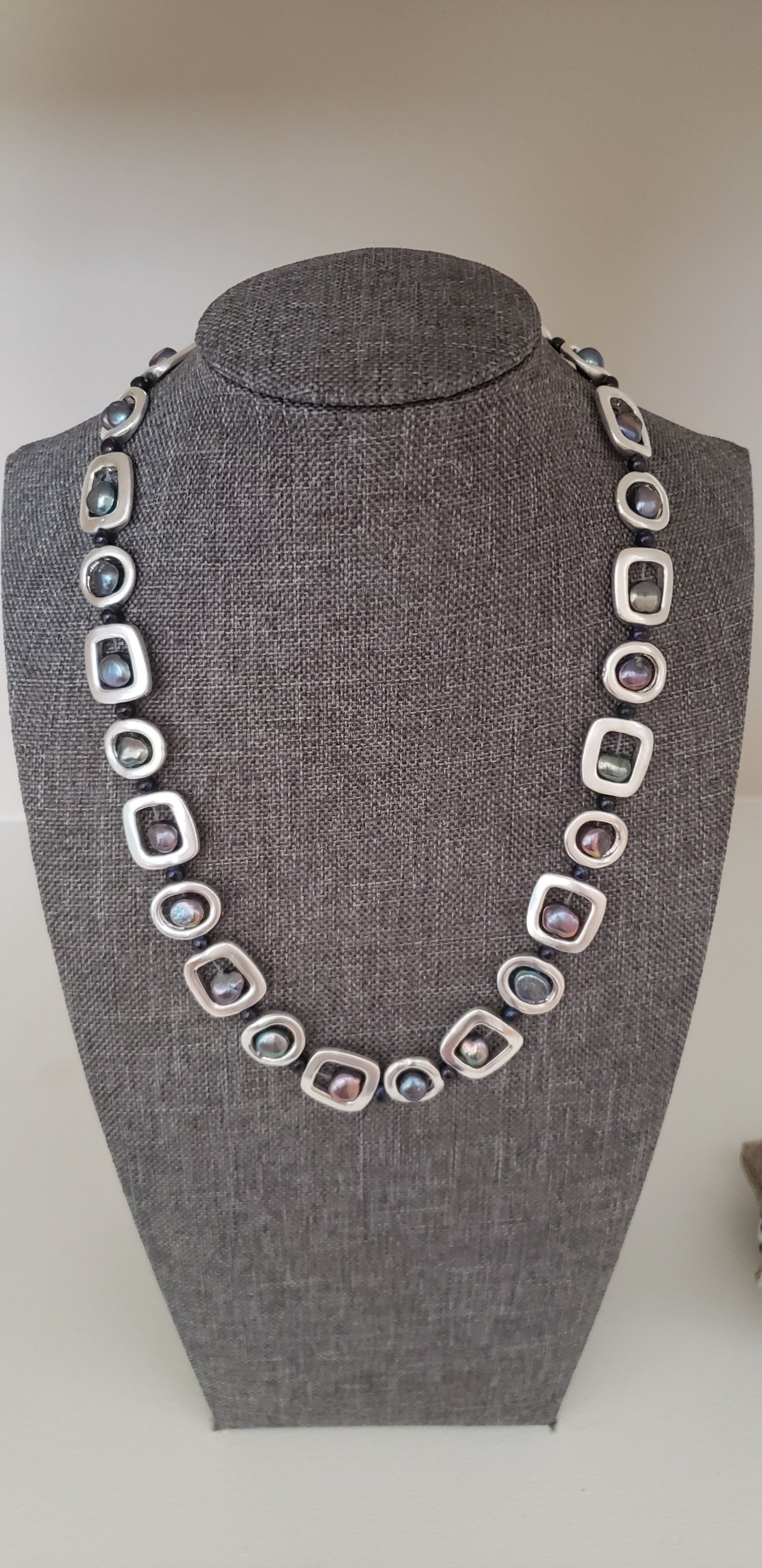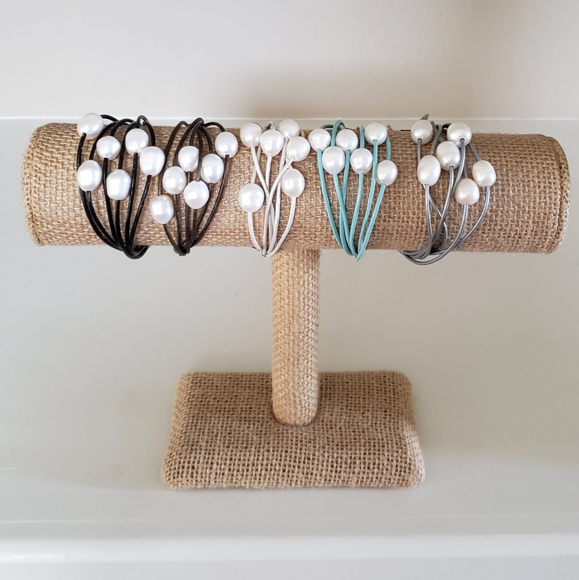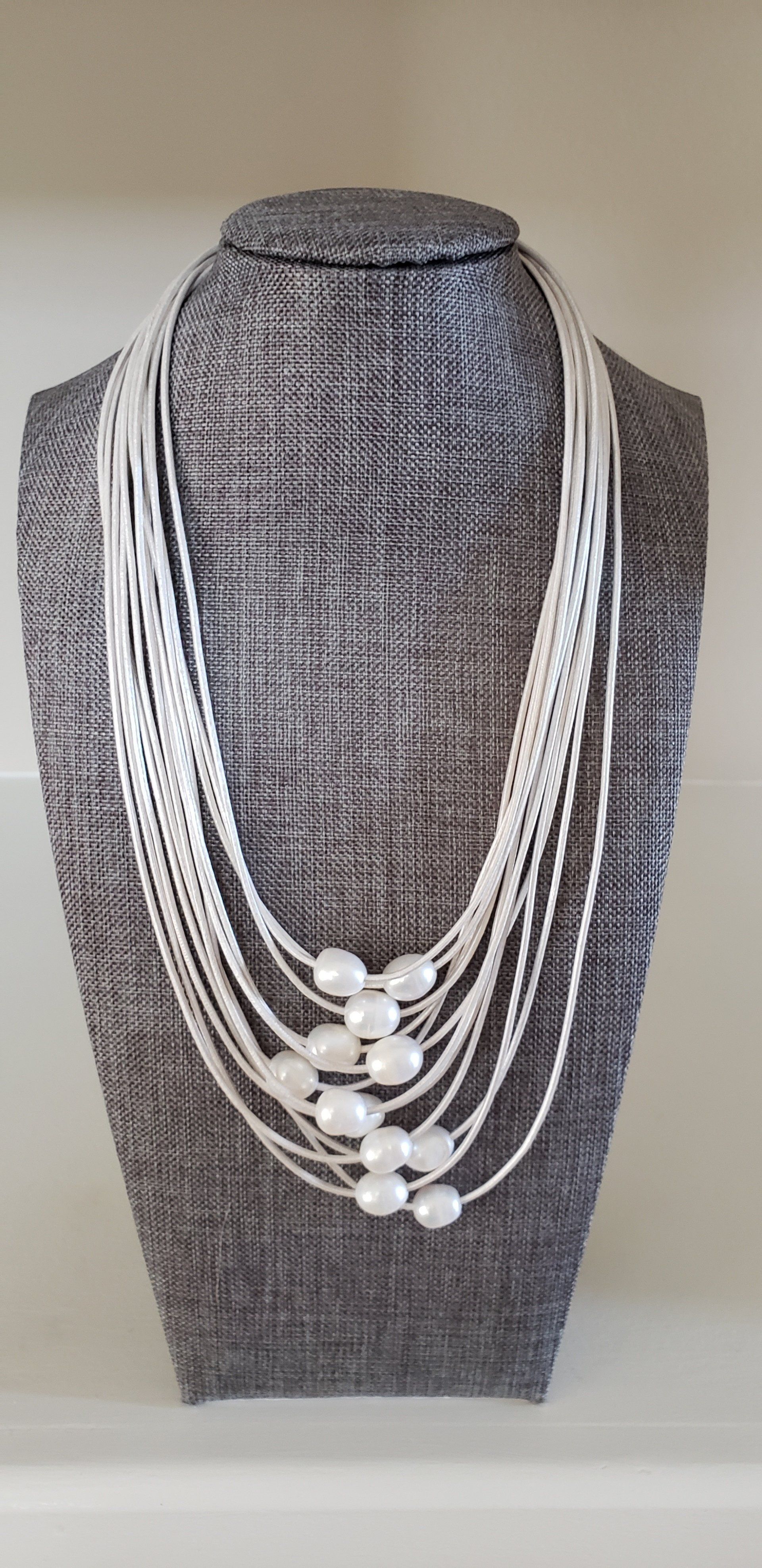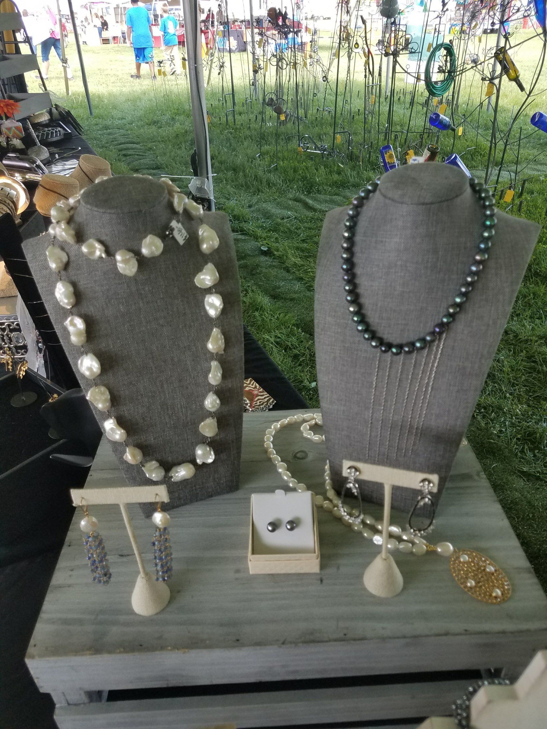 All of these pieces are made using fresh water pearls, crystals and stainless steel. I can honestly say I have never met a neck that these did not compliment. They look good on EVERYONE!