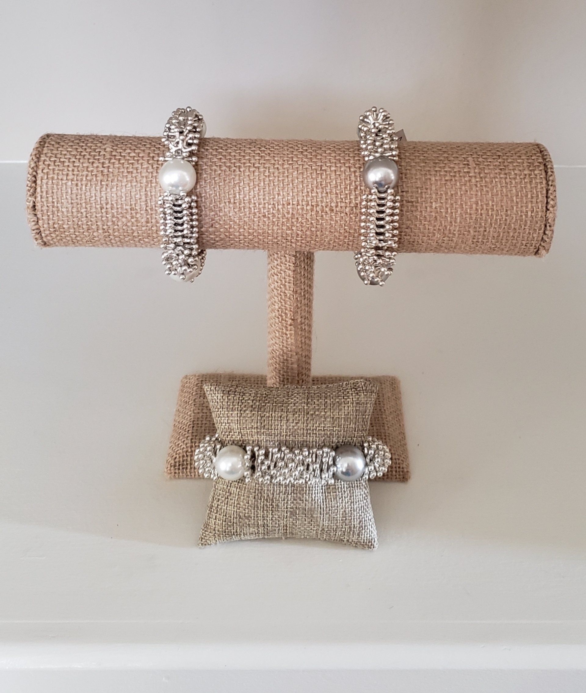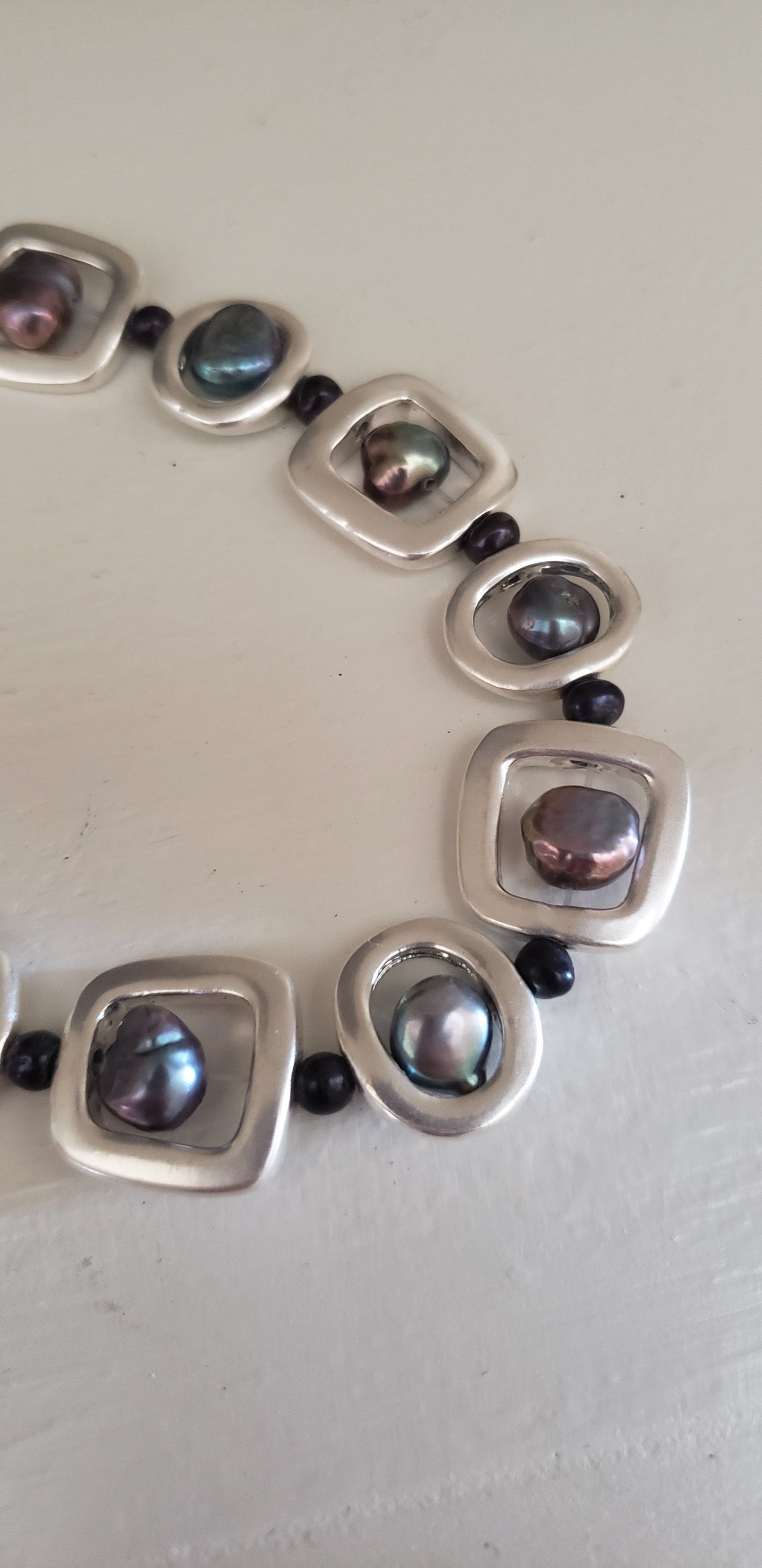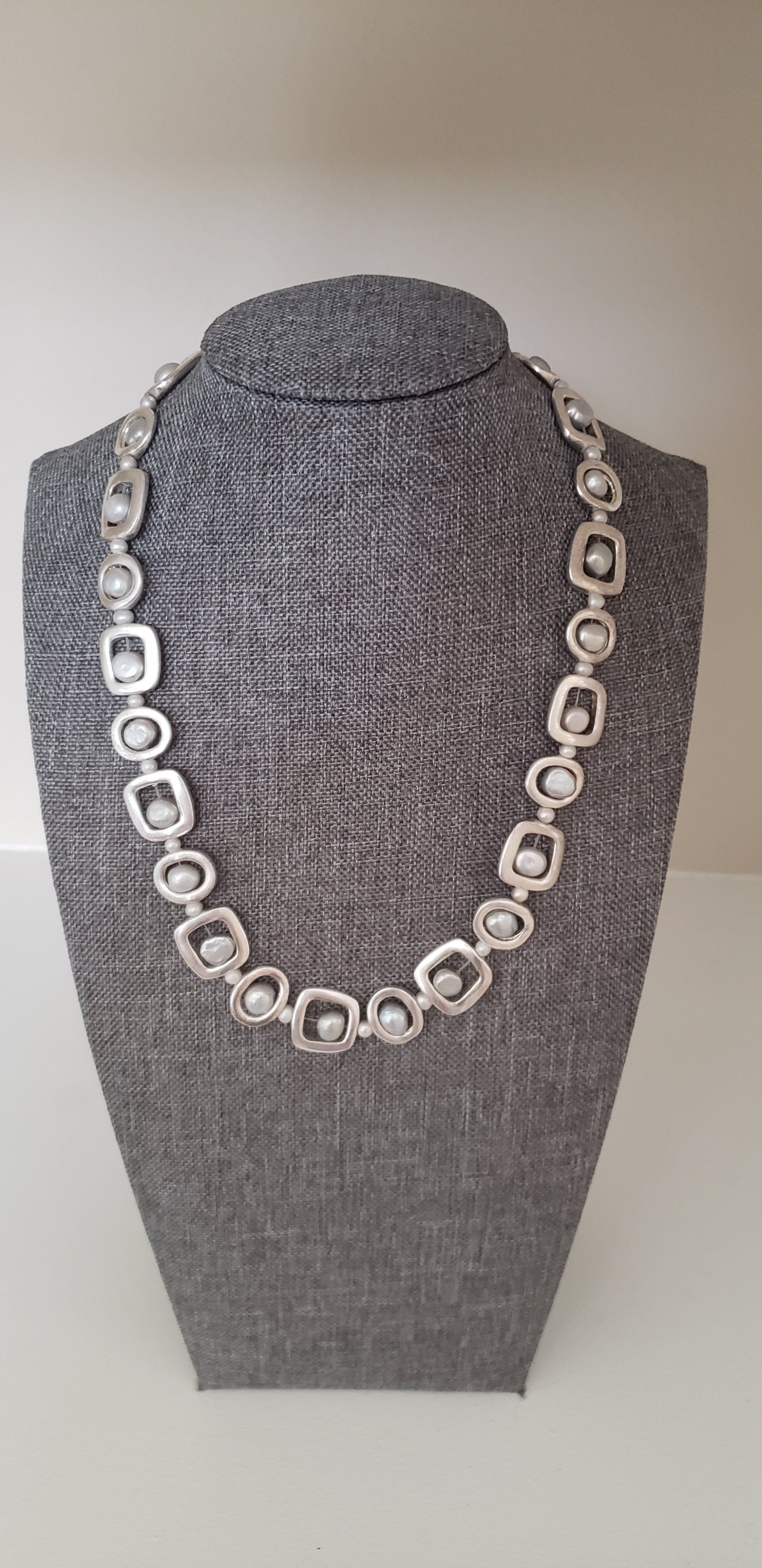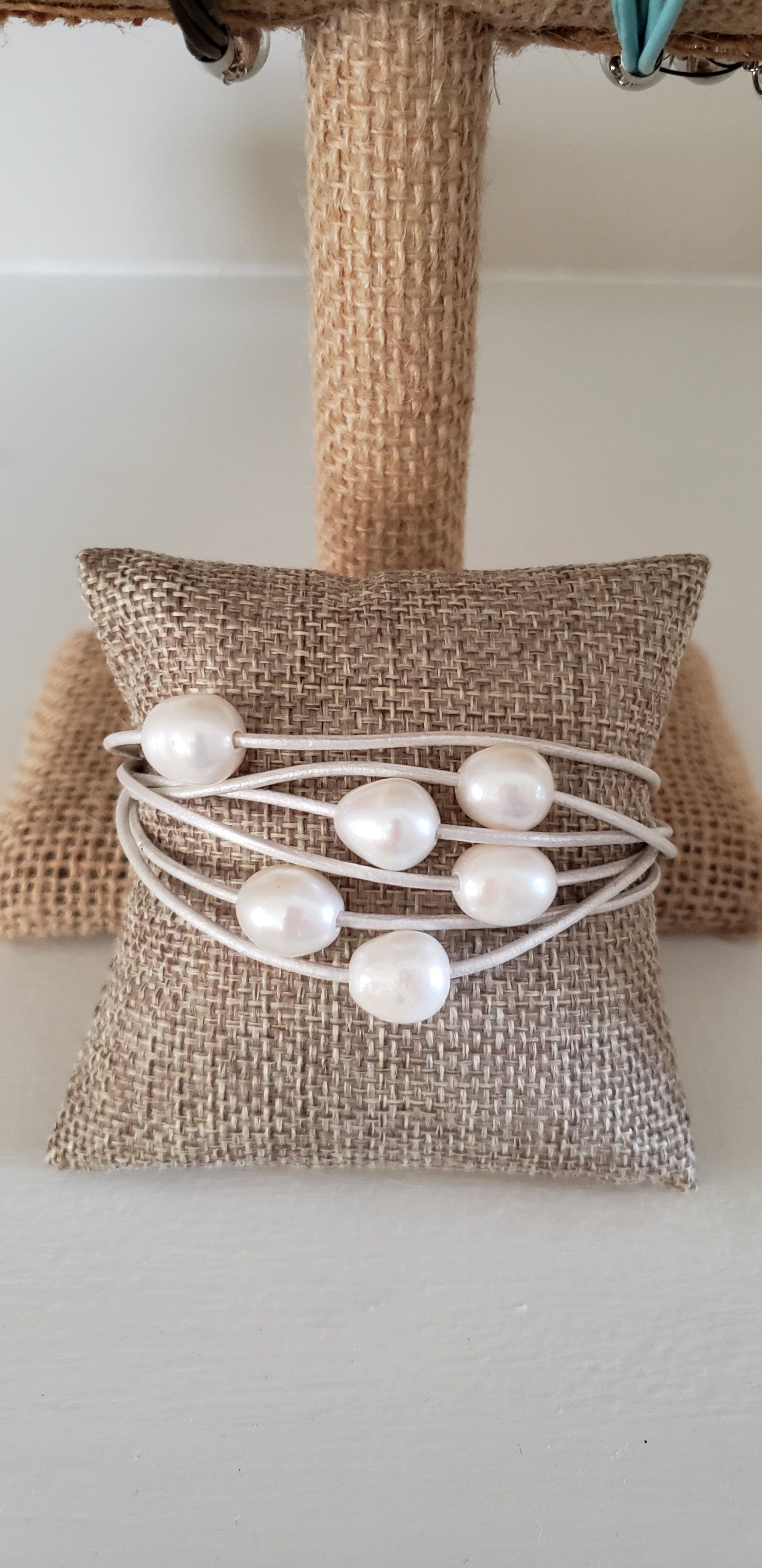 All of these pieces are made using fresh water pearls, crystals and stainless steel. I can honestly say I have never met a neck that these did not compliment. They look good on EVERYONE!