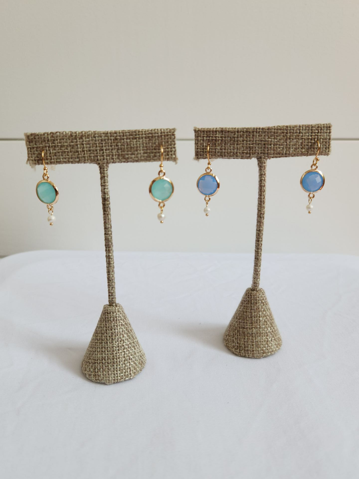 These fabulous necklaces are 18"-20" and are made of some of the most amazing semi-precious stones. Each pendant is hand-forged and created so no 2 are identical. Easy to wear! That's our motto. Each necklace has either a pave lobster clasp or a toggle and clasp. All in the front! Easy to wear!